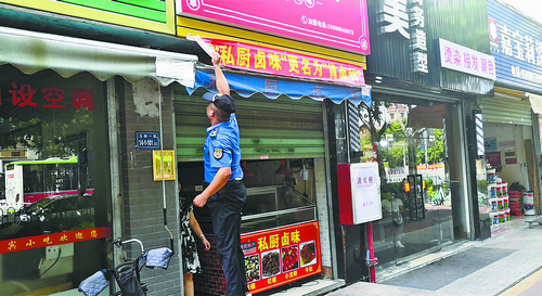 城管人員整治商戶戶外廣告。(翔安區城管局 供圖)