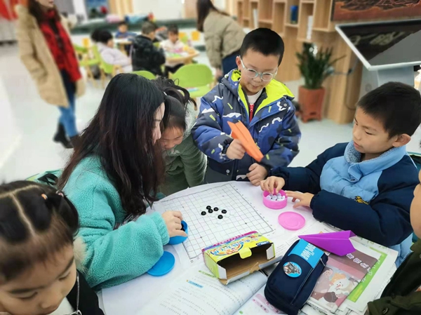 志愿者與孩子們下棋。清流縣委文明辦供圖