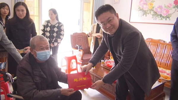 文明風1月21日訊1月20日,省委文明辦慰問組一行到漳州市龍文區慰問首屆全國道德模范提名獎獲得者阮文發,市委文明辦三級調研員劉述沖及區委常委、宣傳部長劉蓓暉、區委宣傳部副部長戴學慧,藍田街道領導陪同慰問。