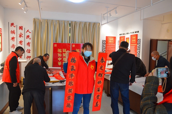 志愿者展示春聯(lián)作品。仙游縣委文明辦供圖