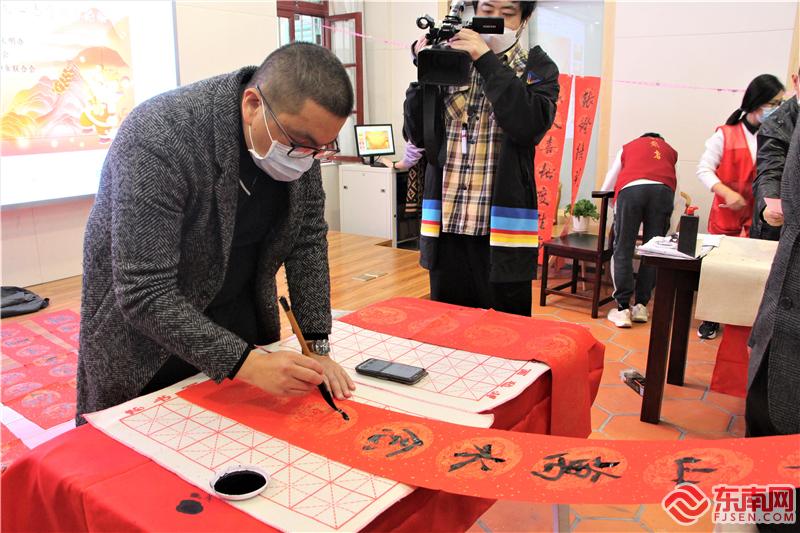 臺灣書法家現(xiàn)場題寫春聯(lián),送上祝福。東南網(wǎng)記者 李霖 攝