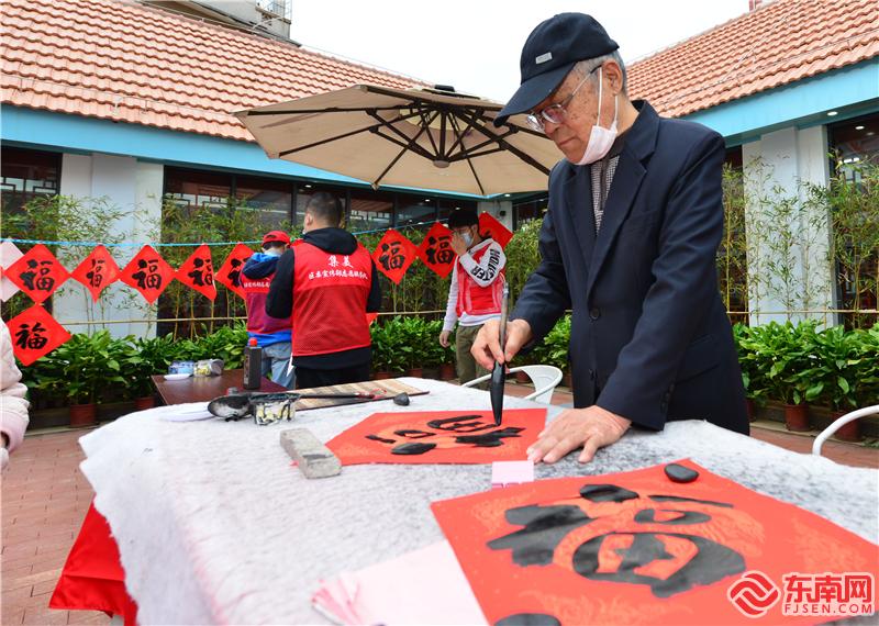 臺灣書法家現場題寫春聯,送上祝福。東南網記者 李霖 攝