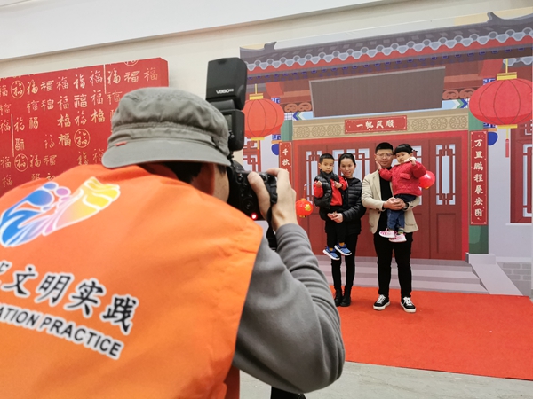 這邊全家福拍攝活動熱鬧非凡,那邊剪“?!弊?、送“?!甭?、接“福”袋等活動亦歡樂不斷。記者現場看到,在青年志愿者老師的指導下,家長和小朋友們體驗傳統剪紙文化,剪出了無一重復的“?!弊郑o新年帶來了幾分溫馨和祥和;書法家協會的書法大家們則現場揮毫潑墨,一副副充滿喜慶、吉祥、祝福的春聯隨筆而出,一張張鮮紅的“福”字在大家手上傳遞;陽光太太志愿者們也沒閑著,她們將一份份“?!贝徒o環衛工人,祝福他們新的一年紅紅火火、福氣滿堂!