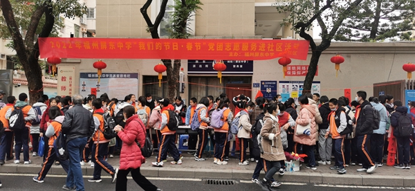 座談會后,一行人走進屏東中學,在屏東中學師生的介紹中,了解“雙減”政策下,屏東中學鼓勵學生成立互助小組,開展一對一幫扶,鼓勵他們要繼續(xù)保持對學習和生活熱情,把社會各界的關(guān)愛化為勤奮學習、回報社會的強大動力。隨后,與先進學生代表互動交流,并為其頒發(fā)榮譽證書及助學金。之后,在鼓樓區(qū)人大代表、福州屏東中學校長張年雄的帶領(lǐng)下,學生代表們走進福州第八干休所,提前向老戰(zhàn)士、老黨員送上節(jié)日的祝福。