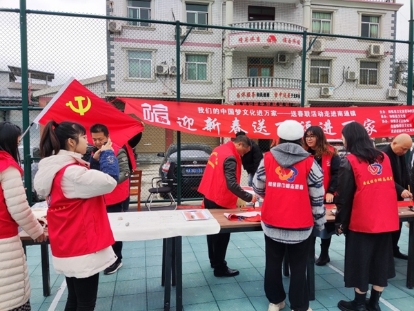 文明風1月26日訊 “虎躍龍騰生紫氣,風調雨順兆豐年”。春節是我國傳統的重大節日,“過大年,貼春聯”是中華民族一直延續的老傳統,是象征吉祥、表達人們向往美好生活的民族風俗。“無聯不成春,有聯春越濃”,為了讓轄區居民過一個幸福祥和的春節,1月24日,閩侯縣南通鎮新時代文明實踐所開展“迎新春?送萬福?進萬家”義寫春聯活動。