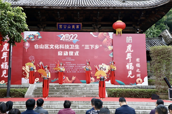文明風1月26日訊(通訊員林麗娜)虎年春節將至,1月25日上午,倉山區文化科技衛生“三下鄉”啟動儀式暨集中服務活動在蓋山鎮高蓋山公園舉行。中共倉山區委常委、宣傳部部長李亦仁出席活動。