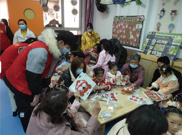 志愿者帶領小朋友制作花燈(臺江區委文明辦供圖)