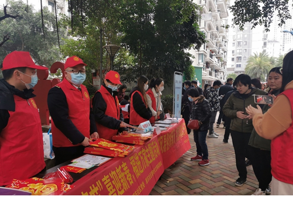 臺江區春節期間開展新時代文明實踐進社區系列活動,圖為志愿者開展文明主題宣傳。(臺江區委文明辦供圖)