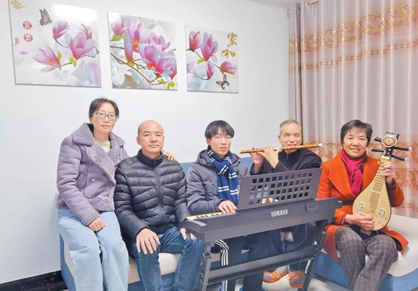 文明風(fēng)2月9日訊 正月里,家住閩侯縣甘蔗街道博仕后龍港城小區(qū)的七旬老人徐美光家里不時飄出悠揚(yáng)的樂聲,祖孫三人一個彈琴,一個吹笛,一個奏柳琴,和諧的旋律表達(dá)著對祖國的美好祝福,對新一年幸福生活的殷殷期盼。