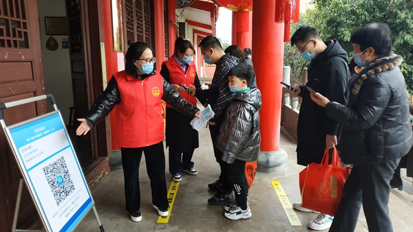 走進顯應宮景區的史跡展館,志愿者林真正在熱情地為游客講解顯應宮的歷史。游客們在志愿者的引導下,在做好自身安全防護的基礎上,興致勃勃參觀了顯應宮的史跡史料。游客鄭向陽說:“春節假期大家都忙著和家人度假,志愿者們放棄休息,服務游客,他們的奉獻讓我感到十分暖心。”