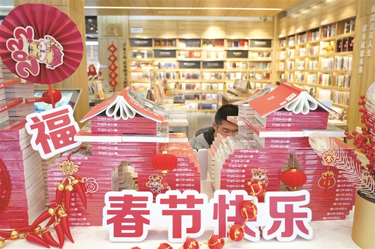 春節期間,走進寧德新華書店圖書城,隨處可見“福文化”主題圖書花堆造型,“福虎生威”紙扇擺件,表達美好祝福的祈愿牌等,所到之處滿是“福氣”。許多家長帶著孩子選購書籍,在濃濃書香中感受別樣“年味”。