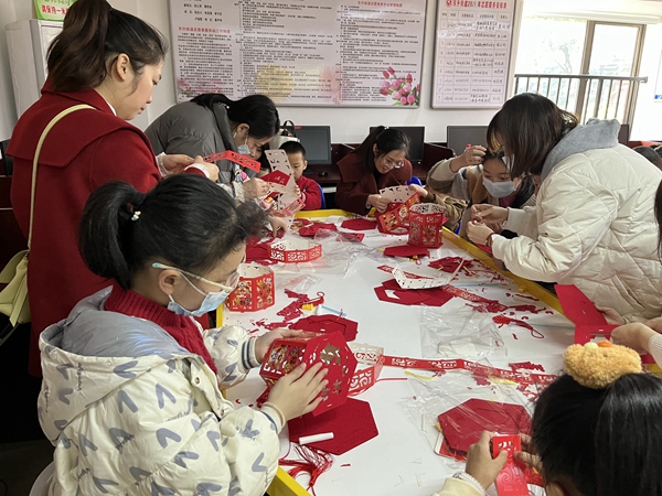 家長與小朋友共同制作燈籠。倉山區文明辦供圖