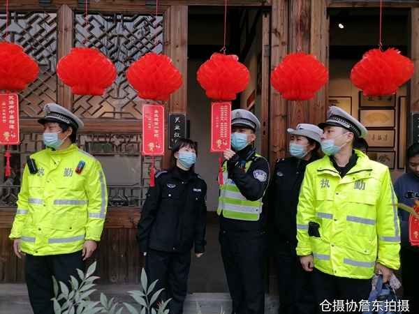 公安干警同志探討燈謎。倉山區攝影家協會 詹東供圖