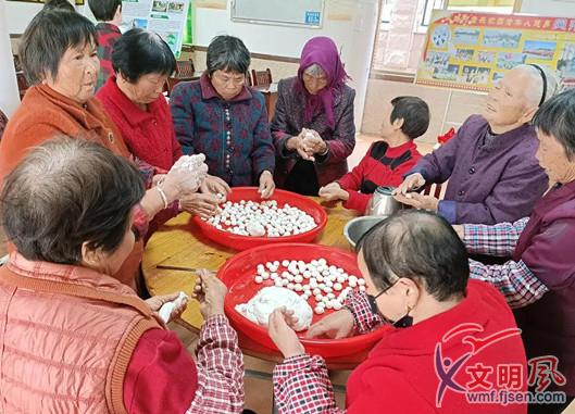 老人們開心地動手搓湯圓(翔安區(qū)委文明辦供圖)