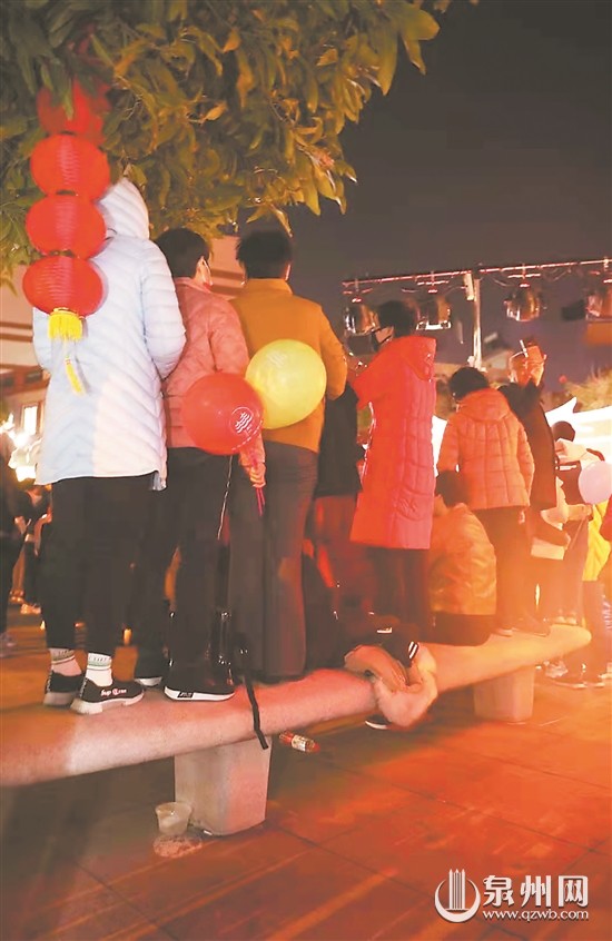 但在泉州天后宮外,記者也發現,有個別民眾在賞燈游玩時,踩踏路邊石凳,隨意丟棄垃圾。