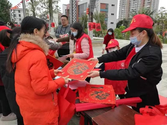 現場組織書法家書寫“福”卡,為群眾街頭送“福”。 洛江區委文明辦 供圖