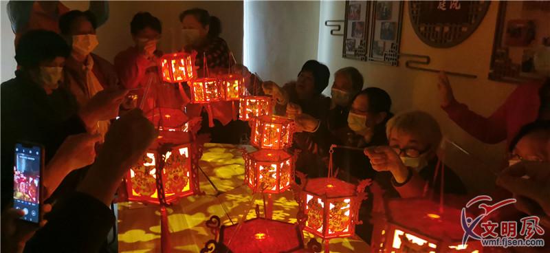 老人居民們齊聚一堂,制作手工花燈。松柏社區供圖