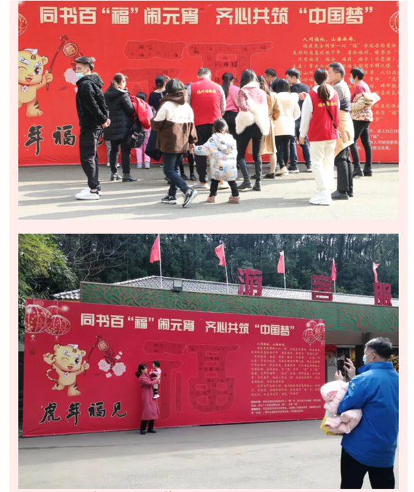 在元宵佳節(jié)之際舉辦了“同書百‘福’鬧元宵 齊心共筑‘中國夢(mèng)’”志愿服務(wù)活動(dòng),邀請(qǐng)入園游覽的市民游客同書百“福”,匯聚成一個(gè)大“福”字,共祝祖國富強(qiáng)、人民幸福。
