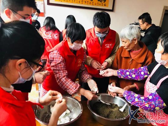志愿者與老人一起包湯圓(翔安區委文明辦供圖)