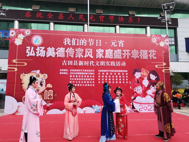 活動(dòng)現(xiàn)場(chǎng),干部群眾歡聚一堂,共話佳節(jié)。閩劇在古田有著深厚的群眾基礎(chǔ),深受百姓的歡迎。當(dāng)日活動(dòng)邀請(qǐng)了閩劇藝術(shù)中心為群眾表演閩劇《百善孝為先》,讓大家近距離感受到非遺的文化魅力,并通過群眾喜聞樂見的方式進(jìn)行優(yōu)良家風(fēng)的宣傳和引導(dǎo)。