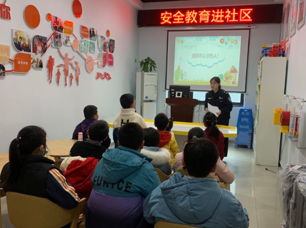 民警結(jié)合實(shí)際案例,為社區(qū)兒童講解防拐騙知識(shí),教育同學(xué)們?cè)鰪?qiáng)安全防范意識(shí)。遇到意外事情要冷靜思考不要放棄自救的信心,熟記老師、家長(zhǎng)及求救電話號(hào)碼。