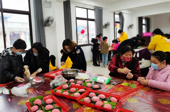 制作寓意團圓美滿的紅團。涵江區委文明辦供圖