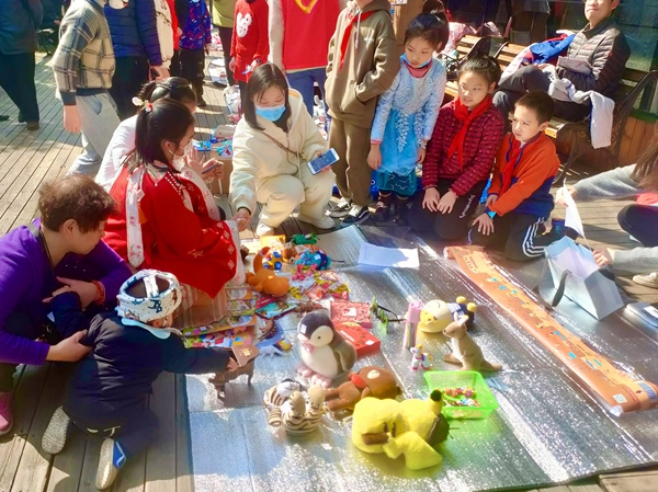 2月26日,鼓樓區建華社區則組織孩子們舉辦愛心義賣活動,并將義賣所得用于拗九節敬老。“走過路過不要錯過,快來看快來買呀!”“滿十元可參與一次抽獎……”活動中,建華社區木棧道被布置成“愛心集市 點亮微光”跳蚤市場,社區小朋友們化身“小老板”,現場充滿了稚嫩的吆喝聲。義賣結束后,大家將收入用于購買拗九粥。小朋友們穿上紅馬甲,在工作人員帶領下,提著拗九粥上門探訪社區老人,表達自己孝老敬老之情。