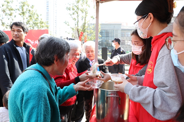 志愿者為到場的老人和市民送上拗九粥。倉山區融媒體中心供圖