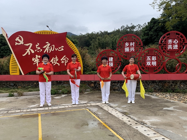 文明風3月1日訊 近日,在南靖縣龍山鎮雙明村新時代文明實踐站,四位身穿紅衣裳的平安家庭女子說唱隊隊員邊跳邊唱,用三句半的形式,宣傳黨的十九屆六中全會精神,贏得圍觀群眾陣陣喝彩。