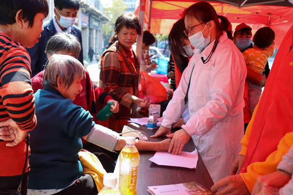 活動中,志愿者們?yōu)槿罕娝蜕限志胖啵先藗円贿叧灾志胖啵贿呌^看雜技、長笛表演等精彩節(jié)目,倍感關(guān)懷和溫暖。現(xiàn)場還有醫(yī)務(wù)人員提供義診服務(wù),普及健康知識;開展智慧助老活動,普及智能手機(jī)基礎(chǔ)操作,常用app使用知識宣傳和防詐騙知識;開展老年人權(quán)益保障專項(xiàng)普法活動,提供法律咨詢。