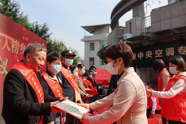 百善孝為先,孝為百行首,為進(jìn)一步傳承和弘揚(yáng)孝老愛親的傳統(tǒng)美德,營造“尊老、敬老、愛老、助老”的良好氛圍,3月1日,由中共福州市委文明辦、永泰縣文明委、永泰縣新時代文明實(shí)踐中心主辦,永泰縣委宣傳部、縣委文明辦、縣人民法院、縣審計局、團(tuán)縣委、中國移動永泰分公司、中國電信永泰分公司、永泰縣煙草專賣局(分公司)承辦的踐行雷鋒精神 弘揚(yáng)孝善文化 強(qiáng)國復(fù)興有我——2022年福州市“我們的節(jié)日·拗九”永泰專場主題活動暨3·5學(xué)雷鋒志愿服務(wù)活動在永泰縣北門社區(qū)舉行。福州市委文明辦四級調(diào)研員黃紅、未成處處長盧忠偉,縣人大副主任羅智林、縣政協(xié)副主席張秀群及主、承辦單位領(lǐng)導(dǎo)與身邊好人代表、志愿者、市民群眾等百余人共度拗九節(jié)。
