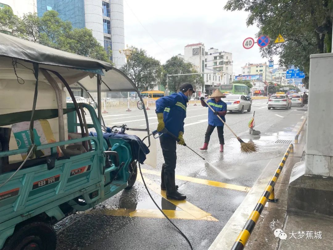 環衛工人在清掃路面。蕉城區委文明辦 供圖