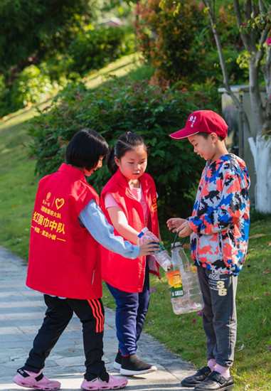 聚龍小鎮(zhèn)志愿者服務(wù)大隊(duì)紅領(lǐng)巾中隊(duì)開展志愿服務(wù)活動。戴藝攝