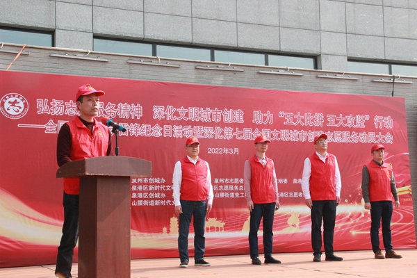 文明風3月3日訊 3日上午,“弘揚志愿服務精神 深化文明城市創建 助力‘五大比拼 五大攻堅’行動”——全國第59個學雷鋒紀念日活動暨深化第七屆全國文明城市創建志愿服務動員大會在泉港新時代文明實踐中心后廣場舉行。