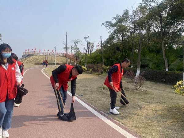 在土海濕地公園,志愿者們攜帶垃圾夾、垃圾袋等工具,分成多個小分隊,對道路兩側和綠化帶中的煙頭、紙屑、包裝袋等垃圾展開地毯式搜索,對游客、市民亂丟垃圾等不文明行為進行勸導,向大家發放做文明公民的宣傳單,普及《志愿者條例》、“八不行為規范”文明知識,宣傳學習雷鋒精神等。