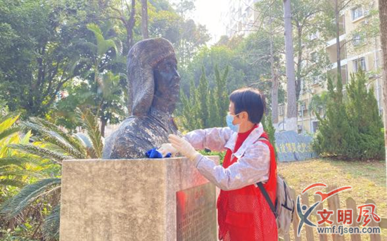 志愿者清洗雷鋒雕像(金山社區供圖)
