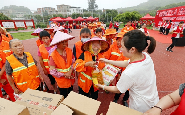 志愿者向529名環衛工人送去愛心大禮包、送義診送健康和免費理發等貼心服務。