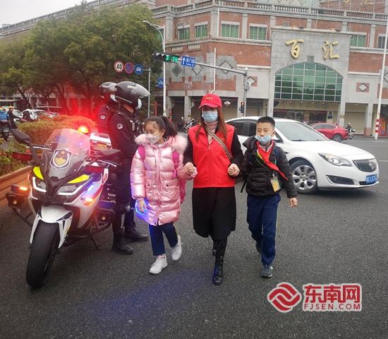 泉州市第二中心小學附近,家長志愿者在路口接送孩子。學校供圖