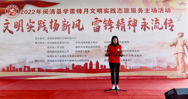 志愿者代表閩清縣愛之翼社工服務中心劉晨露上臺宣讀倡議書