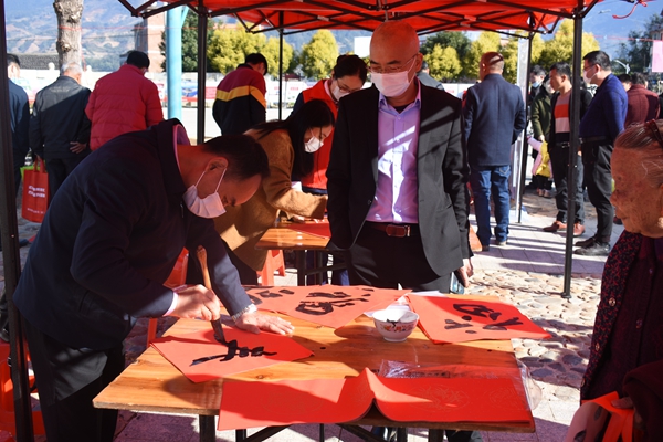 華安縣仙都鎮(zhèn)大地村新時(shí)代文明實(shí)踐站“三下鄉(xiāng)”集中服務(wù),書法協(xié)會(huì)志愿者為群眾書寫春聯(lián)