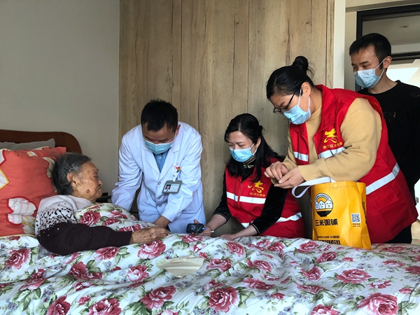 志愿者們來到受助老人家中,為他們提供提測量血壓、心肺聽診、中醫診脈、一對一的用藥指導和健康指導等服務,并叮囑老人按時服藥和規范用藥的注意事項。志愿者們通過面對面、零距離的醫療服務,把為民服務觸角延伸到居民家門口,增強了居民的健康保健意識,極大地提升了居民的獲得感、幸福感和滿意度。