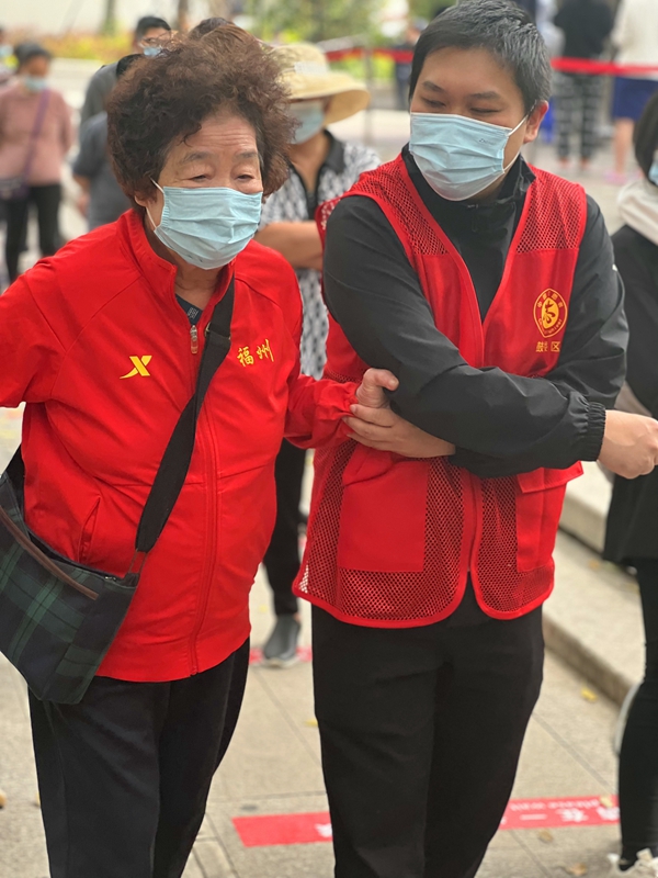 志愿者暖心攙扶老年人(鼓樓區(qū)委文明辦供圖)