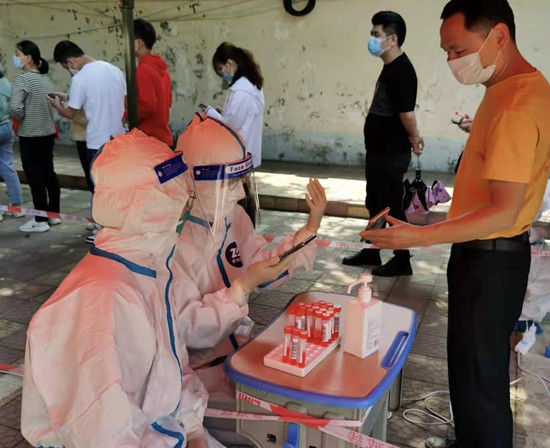在每一輪核酸檢測中,志愿者們繁忙的身影都貫穿始終。為了更好地保障核酸檢測點現場準備工作和核酸檢測效率,志愿者們早出晚歸,但他們都說不累。