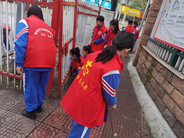 福鼎市山前中心小學紅領巾志愿者清掃校園周邊垃圾