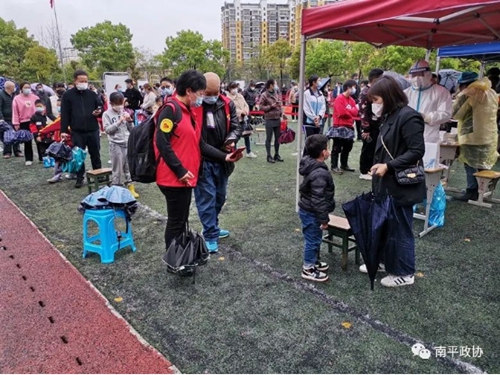 南平市政協(xié)機(jī)關(guān)疫情防控應(yīng)急援助機(jī)動隊小分隊志愿者下沉曼山小學(xué)采樣點。黎彪 攝