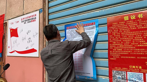 防疫宣傳有力度,鄰里關(guān)愛有溫度。連日來,廣大志愿者積極通過“微信轉(zhuǎn)起來、喇叭響起來、條幅掛起來、海報(bào)貼起來”等舉措,全方位推動(dòng)疫情防控資訊、防疫常識(shí)、政策通告等信息進(jìn)小區(qū)、進(jìn)樓棟、進(jìn)家庭。
