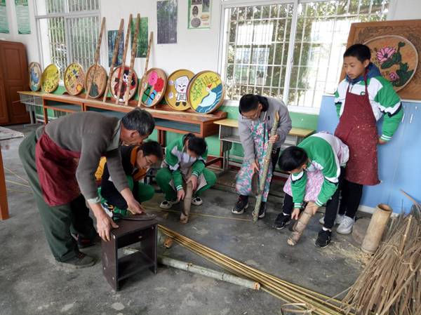 治平畬族鄉民族學校少年宮,學生參與制作竹編工藝品