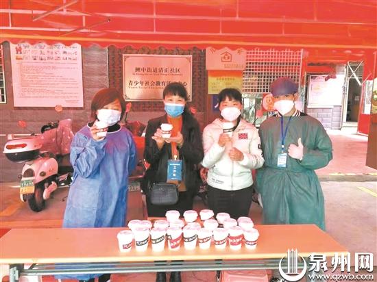 同樣的暖心事也在全市各地發(fā)生著。23日起,泉港青商會(huì)攜手泉港區(qū)人社局、泉港團(tuán)區(qū)委每天向泉港轄區(qū)內(nèi)6個(gè)交通查驗(yàn)點(diǎn)執(zhí)勤的工作人員派送面線糊夜宵。“有了想法后,我們3月22日開(kāi)始在商會(huì)內(nèi)籌集愛(ài)心款,短短一天就籌集了3萬(wàn)元。”泉港青商會(huì)秘書(shū)長(zhǎng)柯龍俊介紹,他們又聯(lián)系了愛(ài)心商家梅蘭海鮮樓,由對(duì)方負(fù)責(zé)制作面線糊。柯龍俊表示,按目前計(jì)劃,夜宵準(zhǔn)備派送半個(gè)月左右。