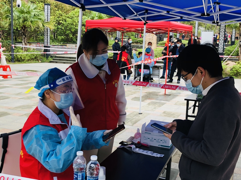 3月27日,建陽區開展第二輪區域核酸檢測,在建陽區童游街道云谷小區核酸檢測點,5名“組工紅”志愿者主動聯系社區,配合檢測工作開展,為疫情防控工作助力。