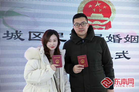 2022年2月22日,姚恒、黃欣怡兩人在鯉城區(qū)民政局登記結(jié)婚。受訪者 供圖
